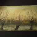Paesaggio con gelsi. Olio su tavoletta 30×50 cm. Autore mitteleuropeo.