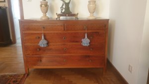 Mobile dell’800 a cinque cassetti, in noce (piccoli restauri). Misure: 83 x 43 cm, H. 134 cm