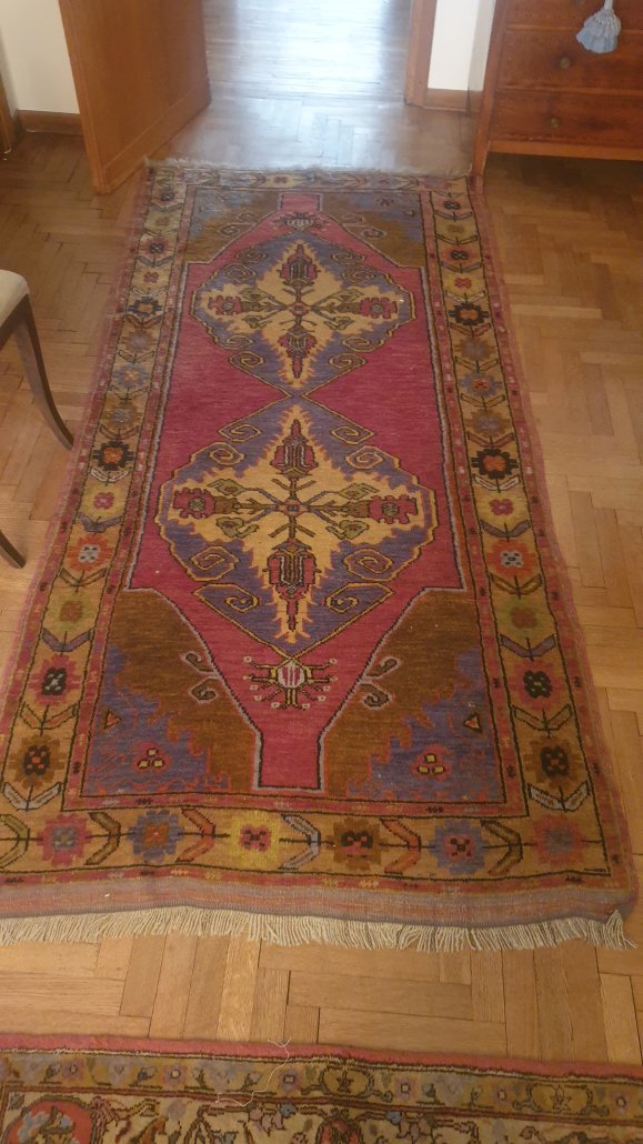 Tappeto a galleria persiano antico. Misure: 240 x 117 cm.