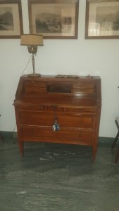 Credenzina a secretaire con ribalta e cassettini, in noce, epoca: ‘800.