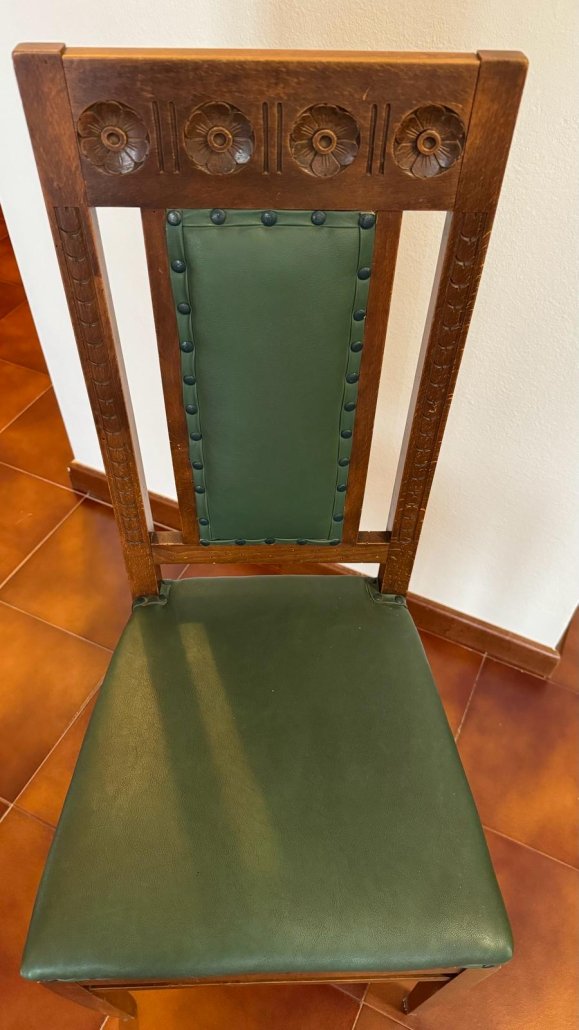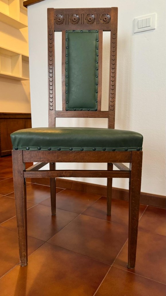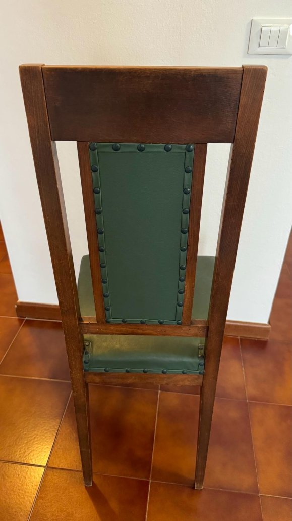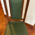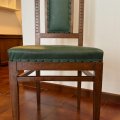 Gruppo di sedie in noce con seduta e schienale imbottito in pelle verde: N. 6