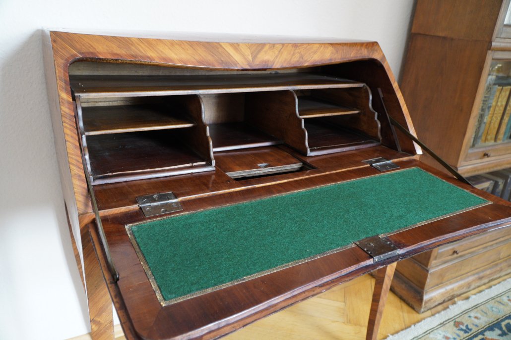 Consolle a ribalta con cassettini interni.