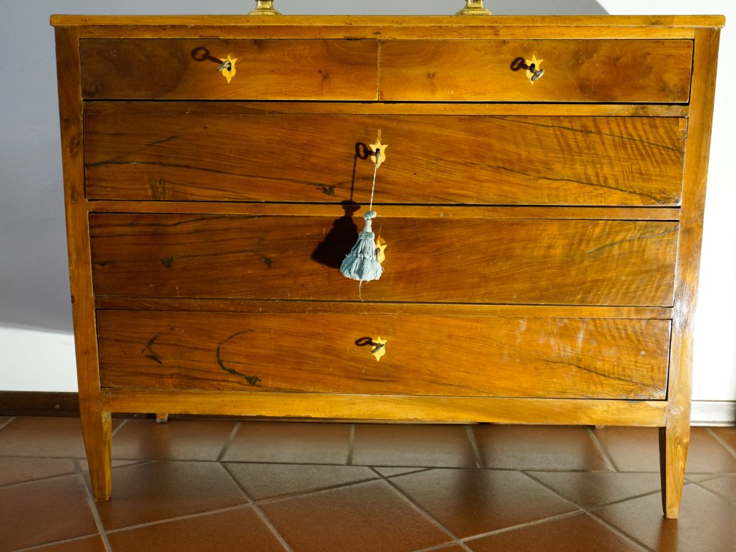 Comò in noce dell’800, tre cassetti e due cassettini