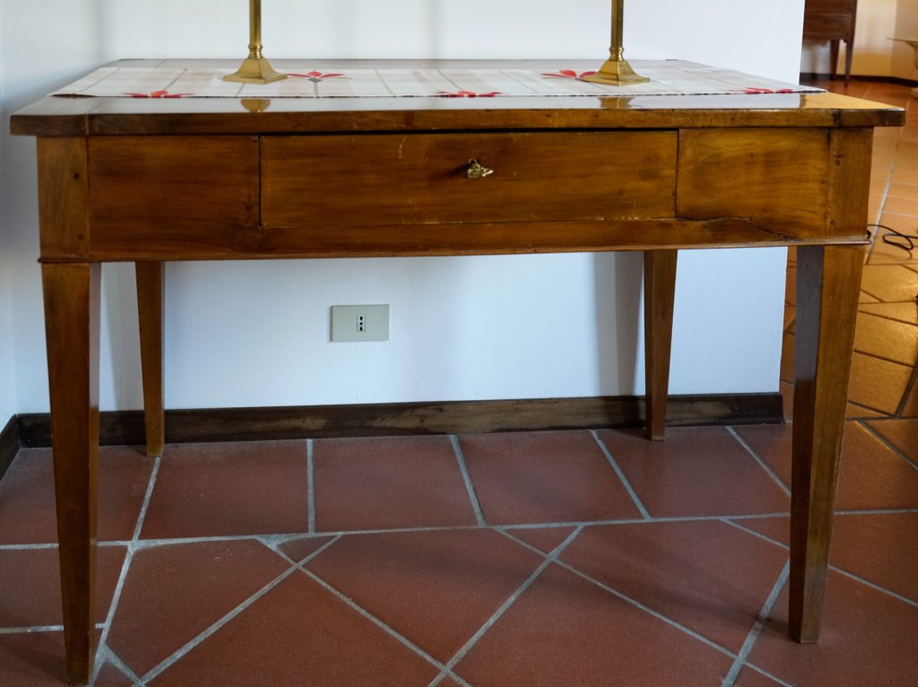 Tavolino scrivania ad un cassettino, in noce. Epoca: Primo Ottocento