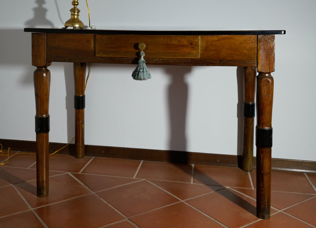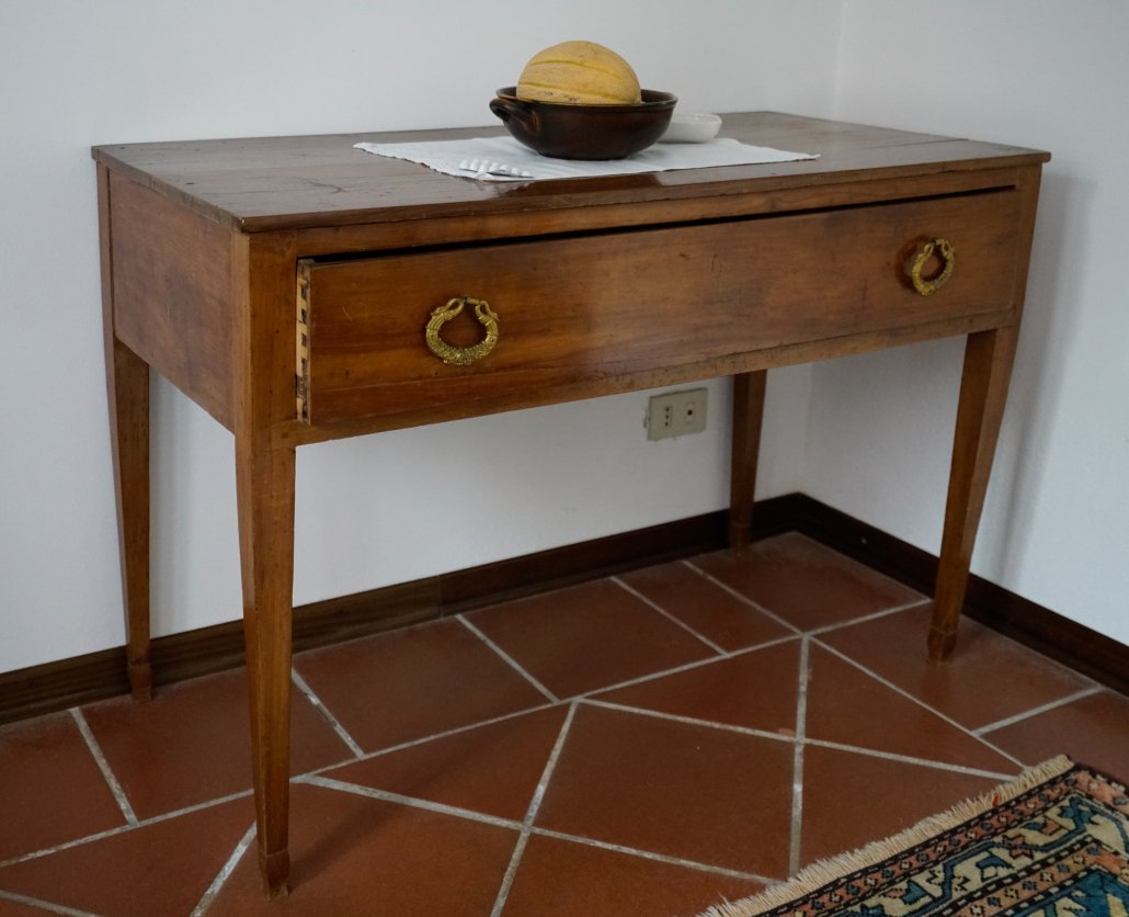 Tavolo in noce con grande cassetto, Epoca: Primo Ottocento