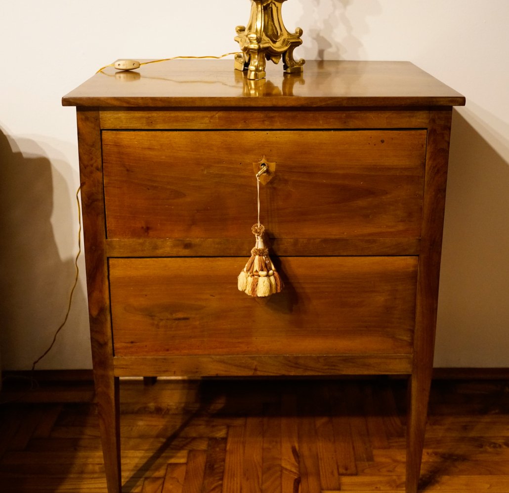 Coppia di comodini in noce a due cassetti. Epoca: Primo Ottocento
