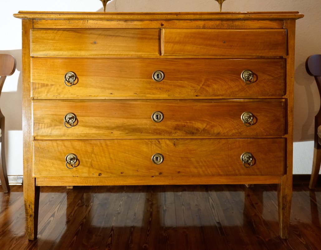 Comò in noce tre cassetti e due cassettini. Epoca: Primo Ottocento