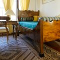 Letto a una piazza a muro, con bel comodino circolare e piano in marmo.