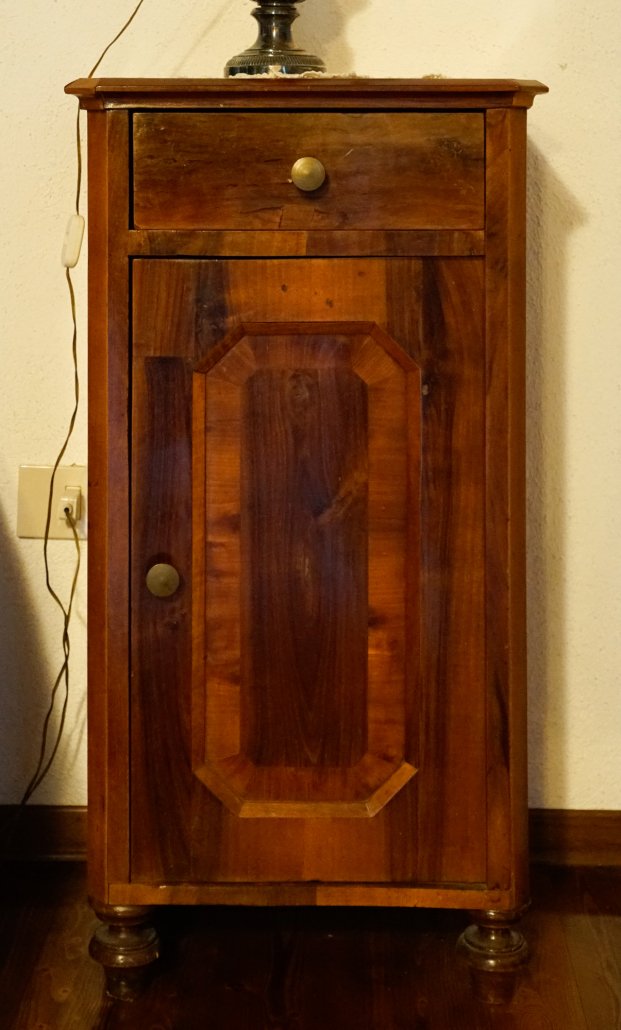Comodino in noce dell’800 a una anta e un cassettino.